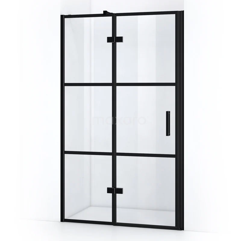 Pearl Duschtür | 110 cm Matt Schwarz Klar mit 4 schwarzen Streifen Drehtür