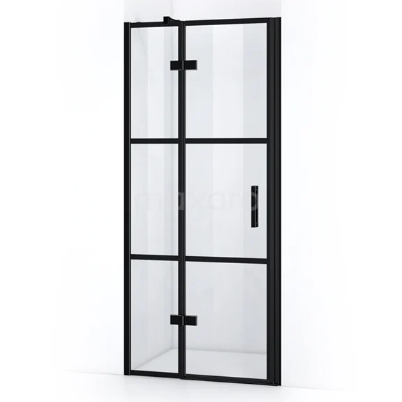 Pearl Duschtür | 80 cm Matt Schwarz Klar mit 4 schwarzen Streifen Drehtür