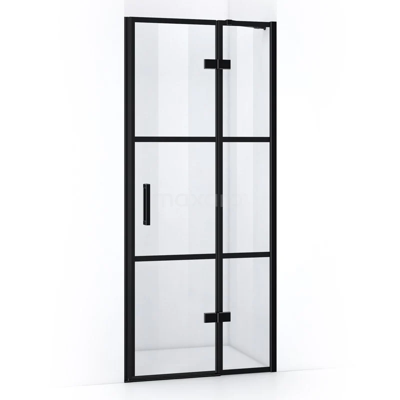 Pearl Duschtür | 80 cm Matt Schwarz Klar mit 4 schwarzen Streifen Drehtür
