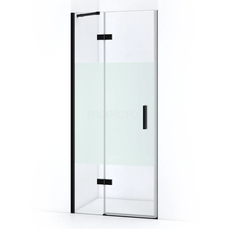 Pearl Duschtür | 80 cm Matt Schwarz Klar mit matter Streifen Drehtür