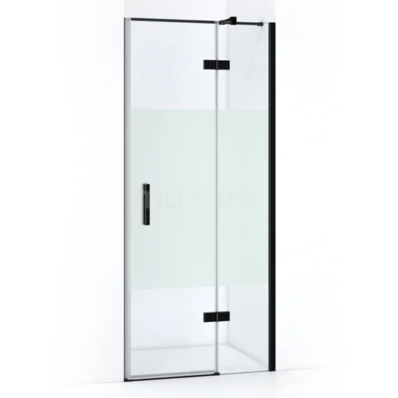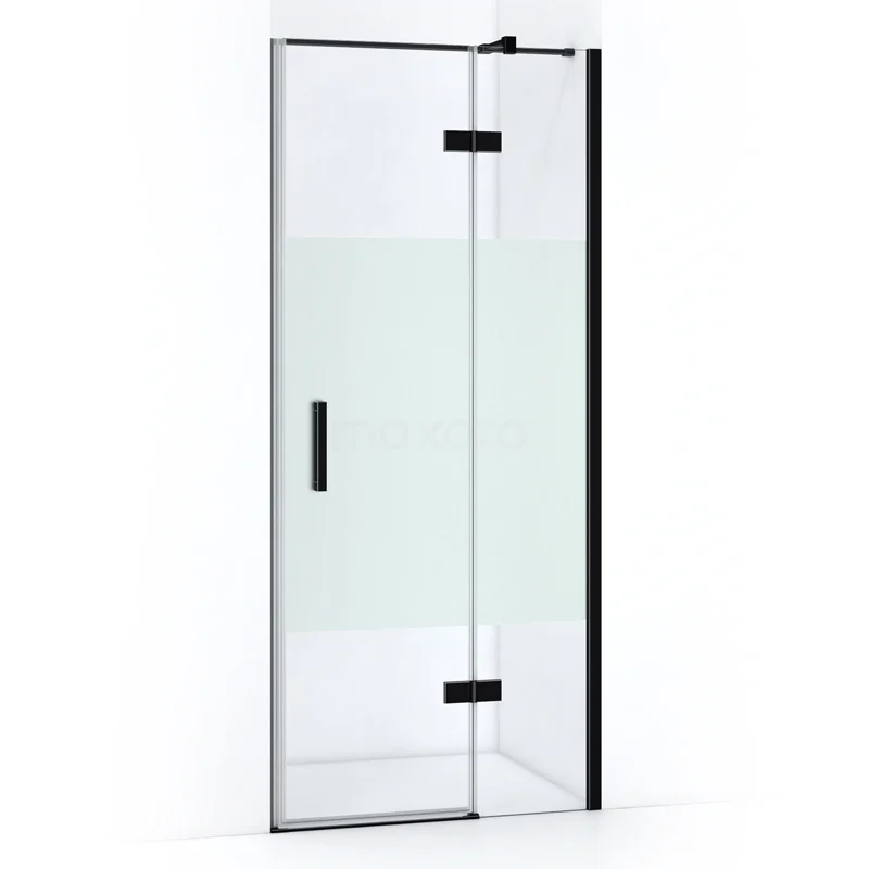 Pearl Duschtür | 80 cm Matt Schwarz Klar mit matter Streifen Drehtür