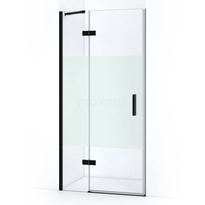 Pearl Duschtür | 90 cm Matt Schwarz Klar mit matter Streifen Drehtür