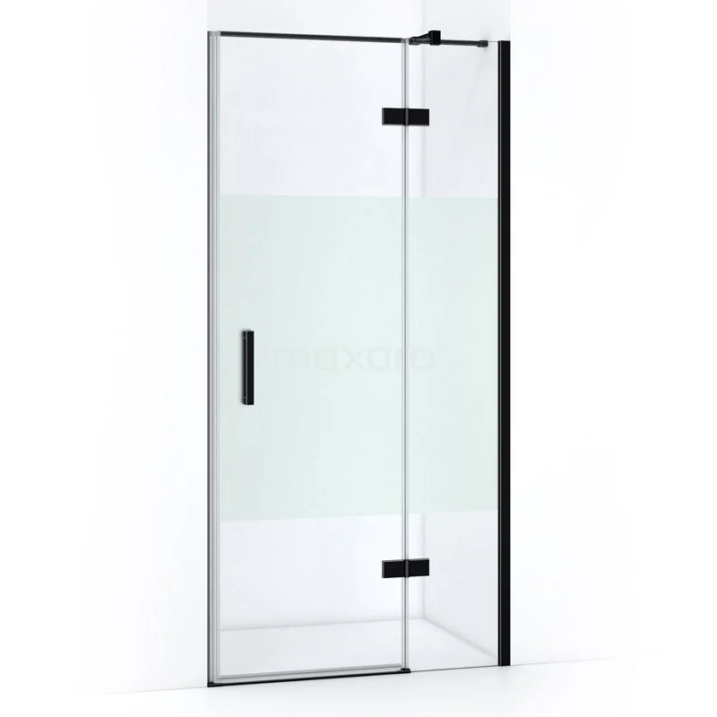 Pearl Duschtür | 90 cm Matt Schwarz Klar mit matter Streifen Drehtür