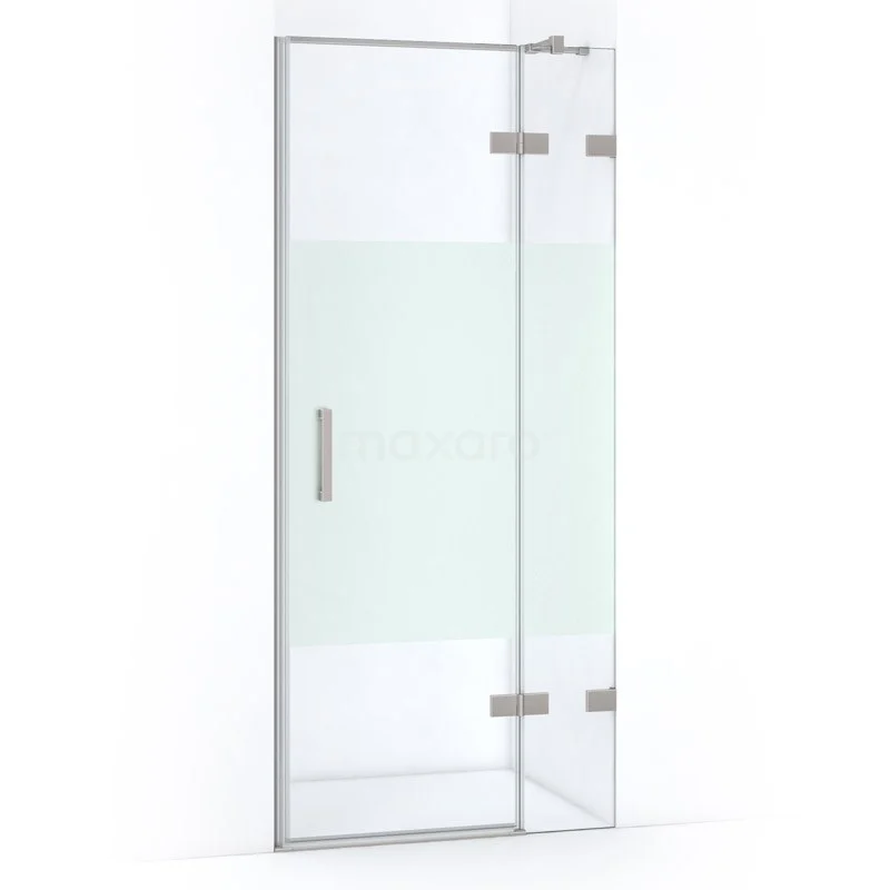 Quartz Duschtür | 80 cm Edelstahl Klar mit matter Streifen Drehtür