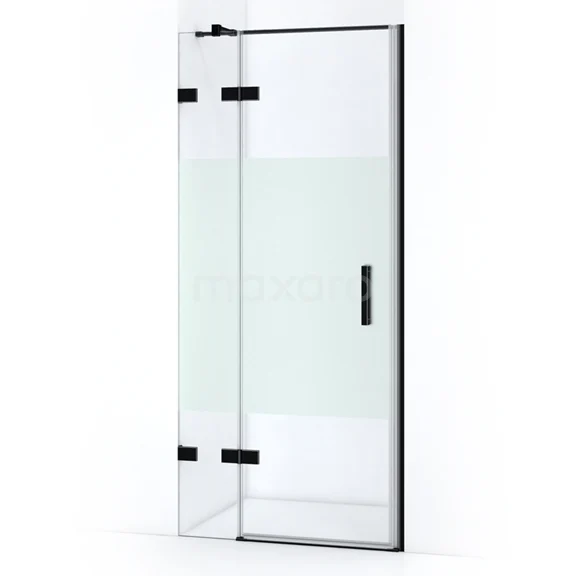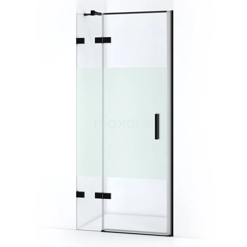 Quartz Duschtür | 80 cm Matt Schwarz Klar mit matter Streifen Drehtür