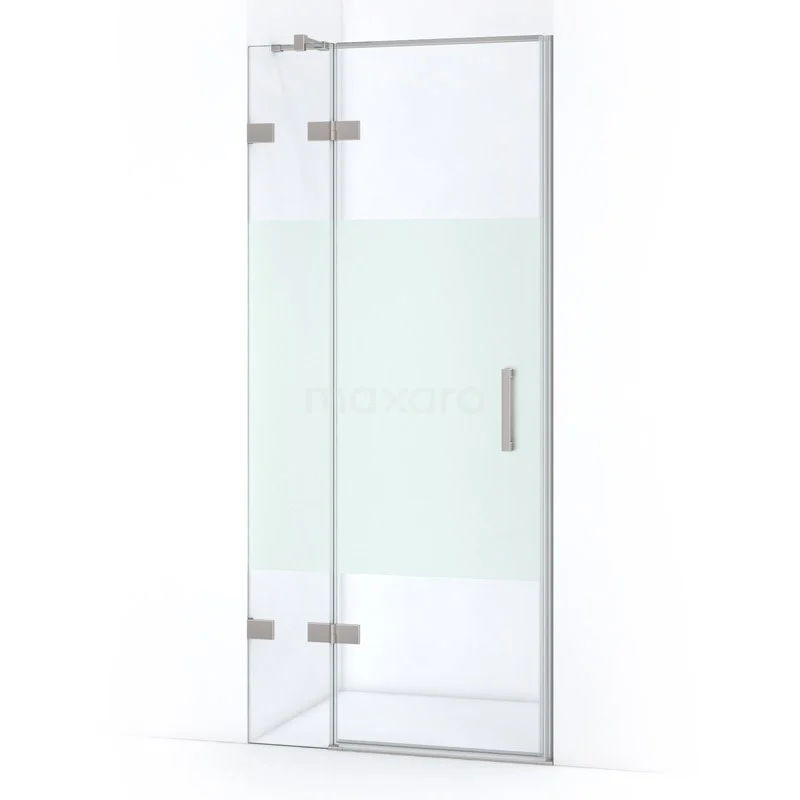 Quartz Duschtür | 90 cm Edelstahl Klar mit matter Streifen Drehtür