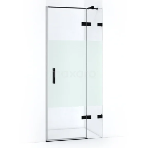 Quartz Duschtür | 90 cm Matt Schwarz Klar mit matter Streifen Drehtür