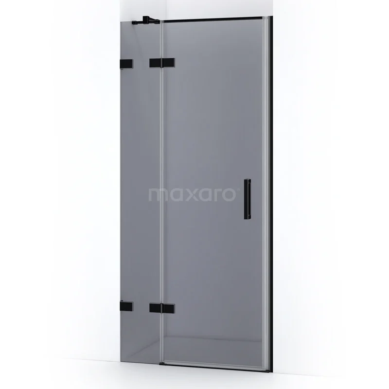 Quartz Duschtür | 90 cm Matt Schwarz Rauchglas Drehtür