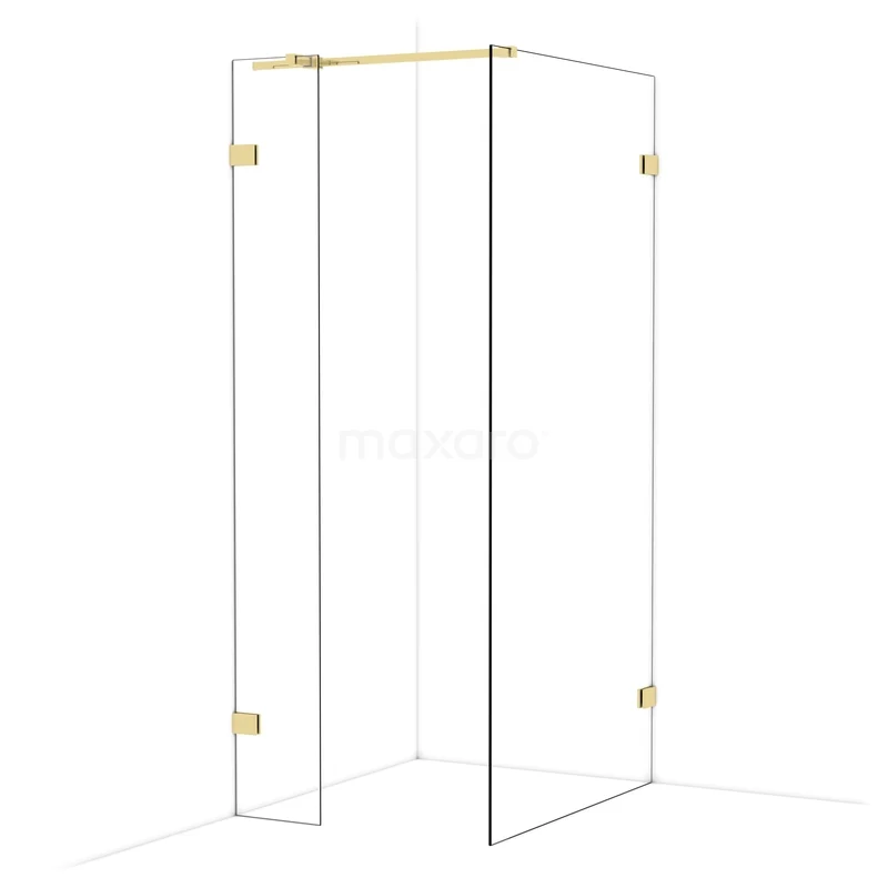 Diamond begehbare Dusche | 100x30 cm Glänzendes Hellgold 2 feste Wände