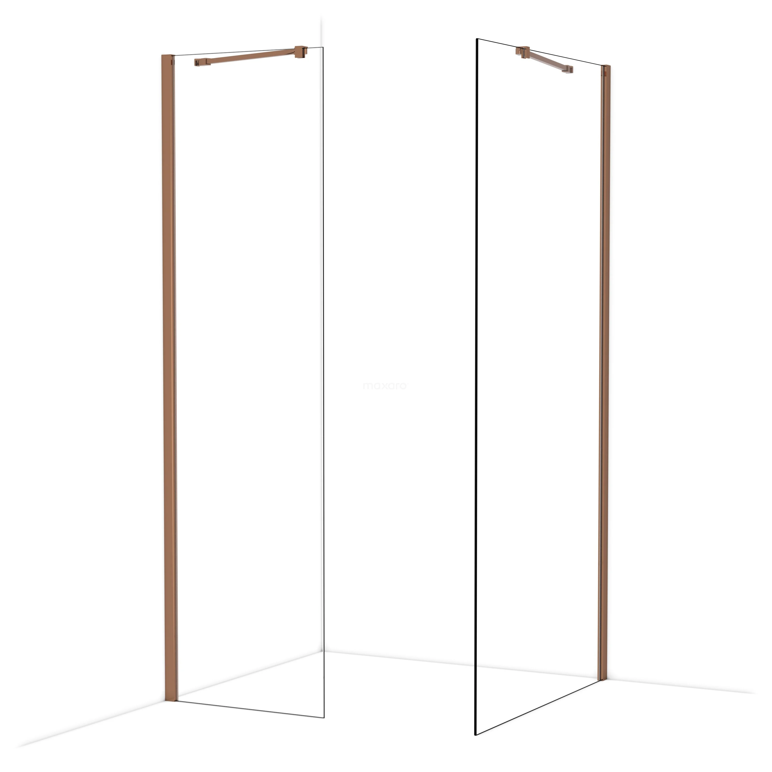 Diamond begehbare Dusche | 100x60 cm Glänzendes Kupfer 2 feste Wände