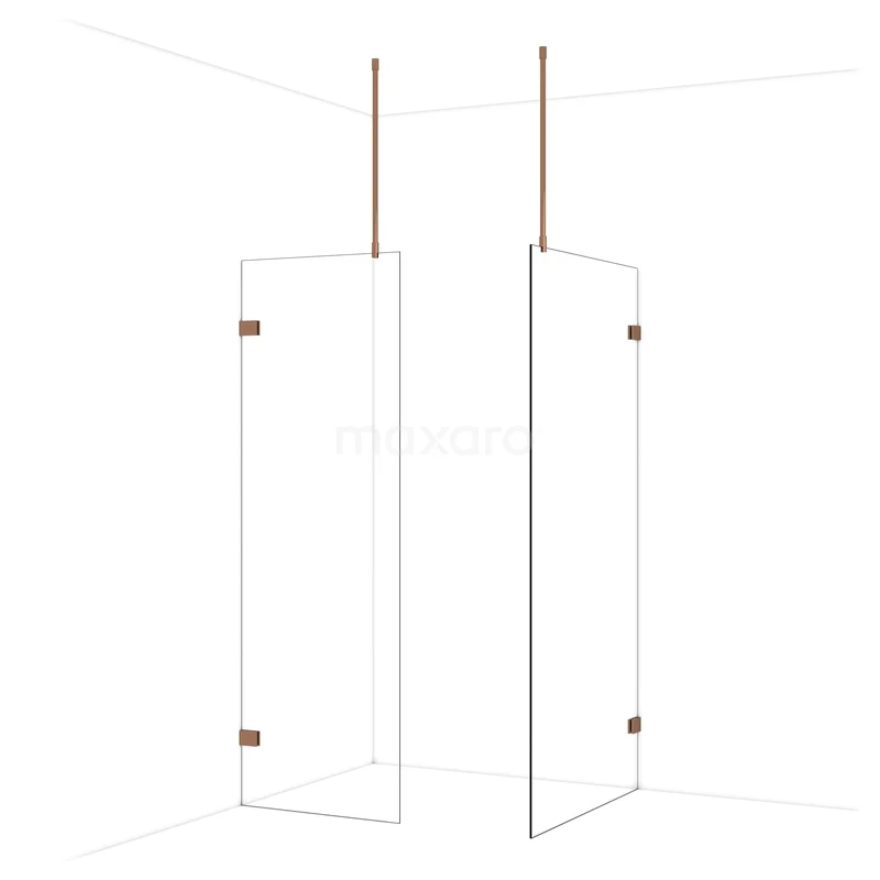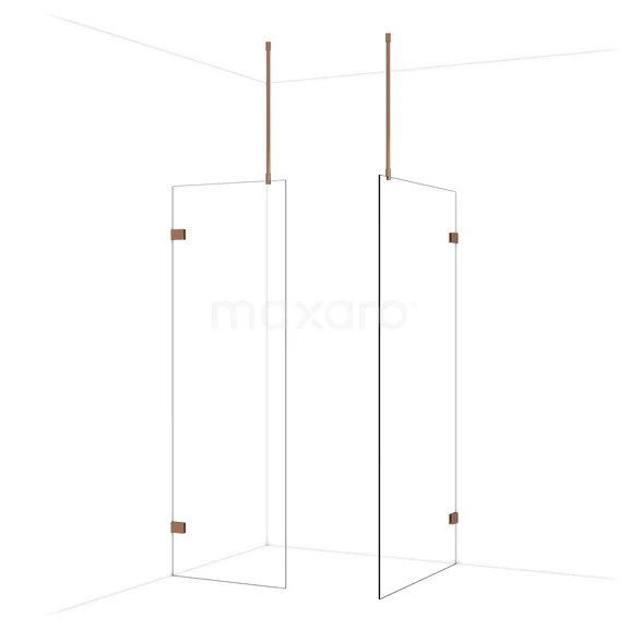 Diamond begehbare Dusche | 100x70 cm Glänzendes Kupfer 2 feste Wände