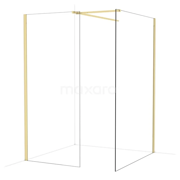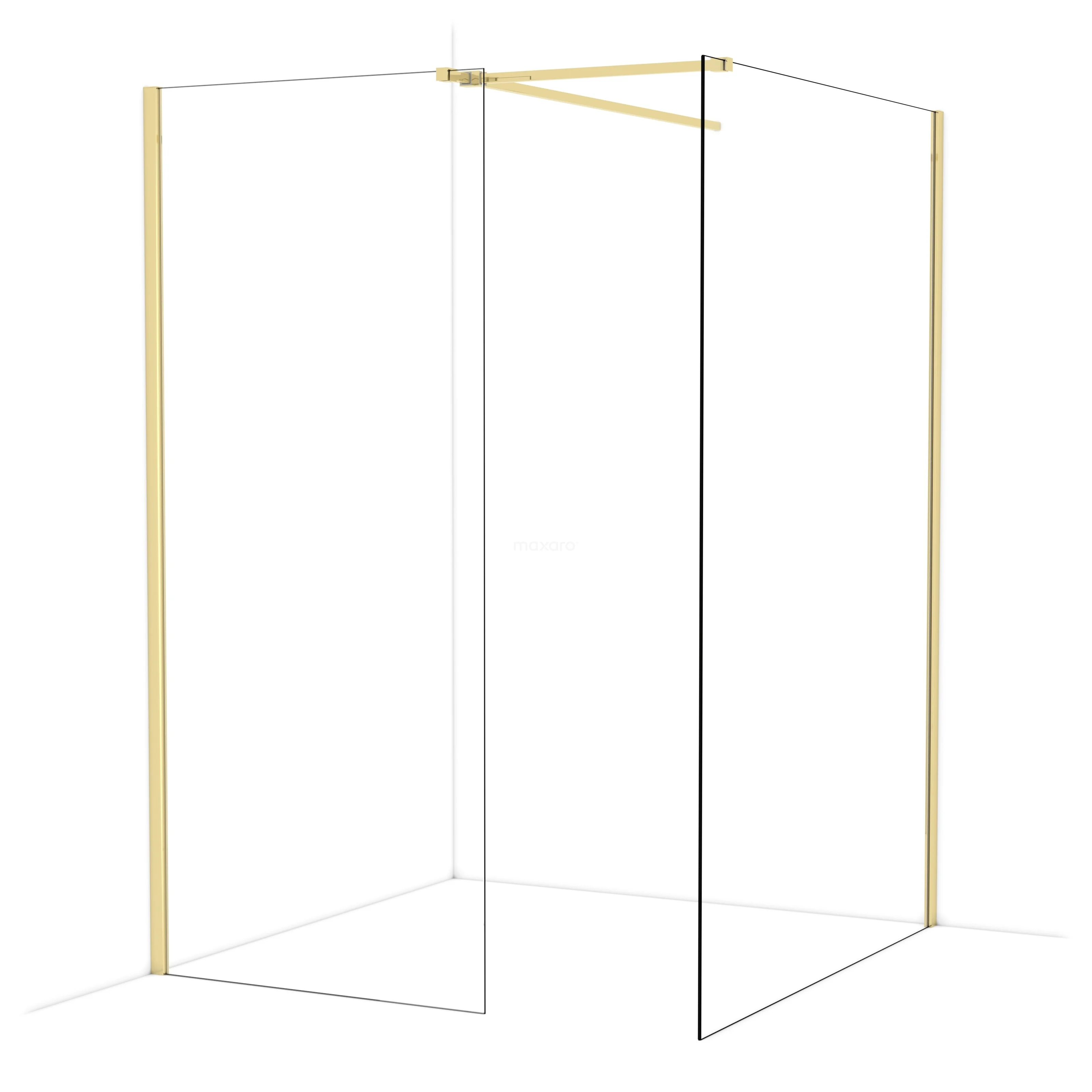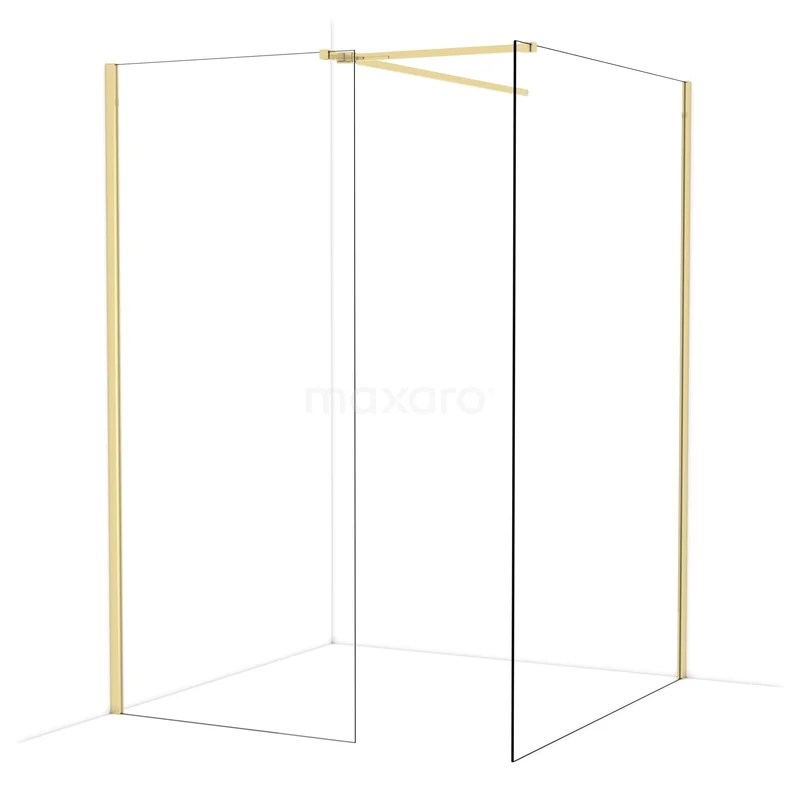 Diamond begehbare Dusche | 140x90 cm Glänzendes Hellgold 2 feste Wände