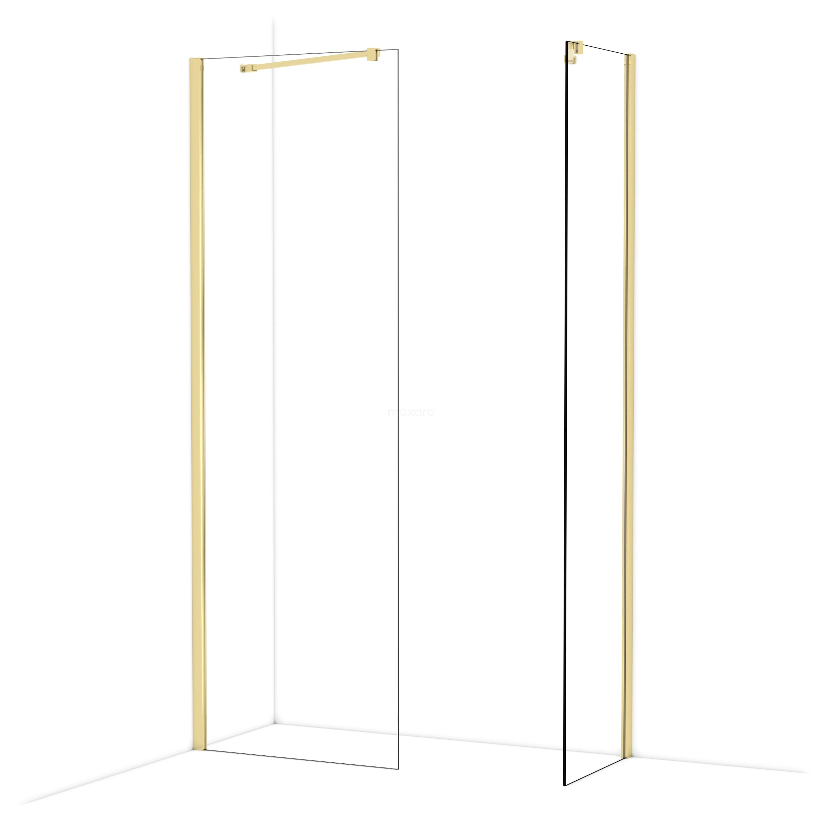 Diamond begehbare Dusche | 70x50 cm Glänzendes Hellgold 2 feste Wände