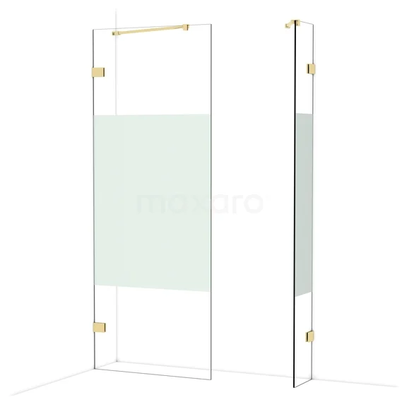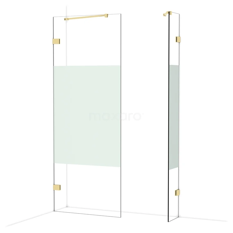 In der stilvollen begehbaren Dusche Diamond mit den Maßen 80x30 cm können Sie jeden Tag herrliche Duschsitzungen genießen. Sie hat ein raffiniertes und luxuriöses Design in glänzendem Hellgold und verfügt über Klarglas mit mattem Streifen für mehr Privatsphäre.