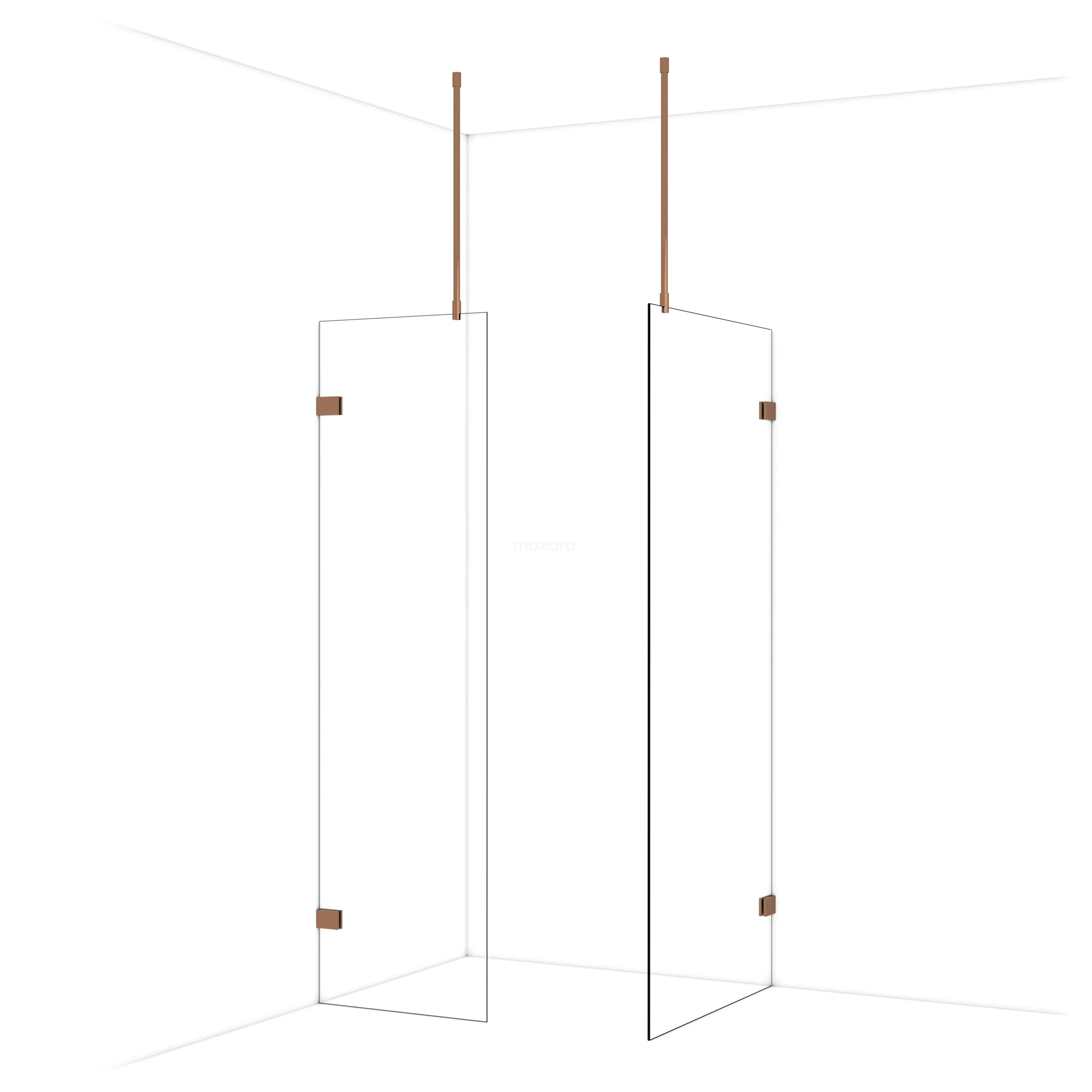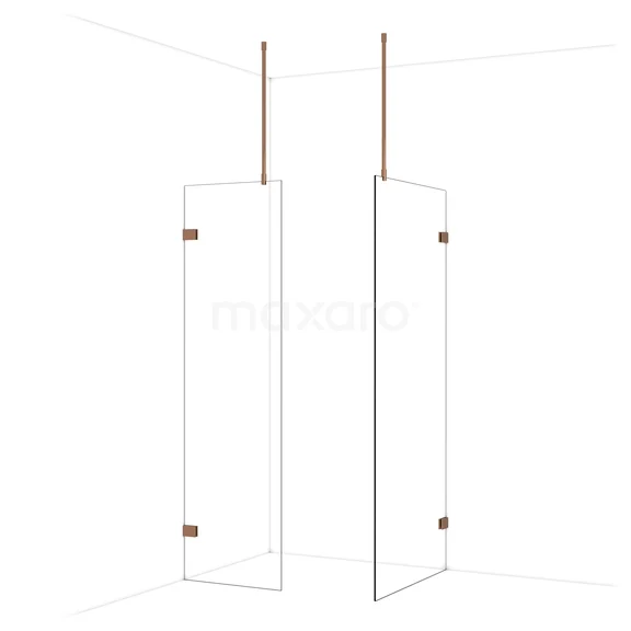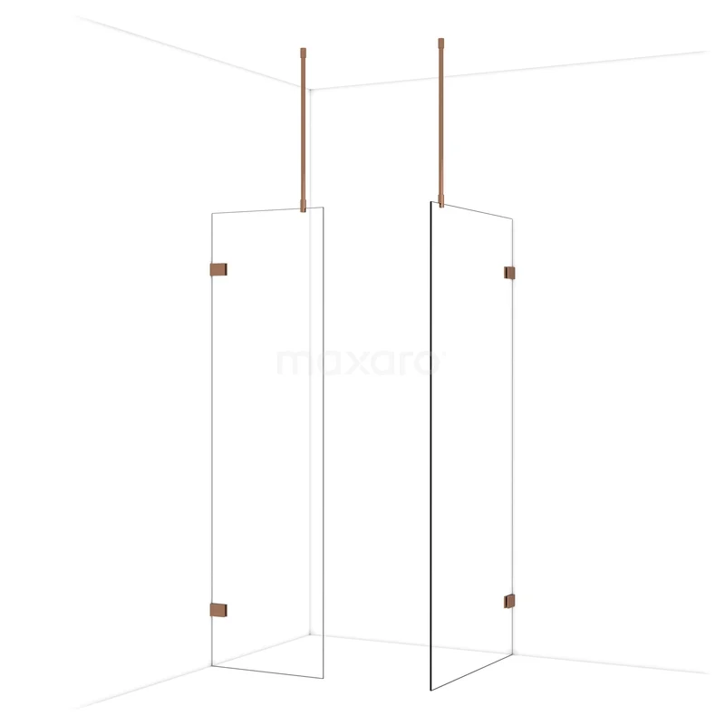 Diamond begehbare Dusche | 90x60 cm Glänzendes Kupfer 2 feste Wände