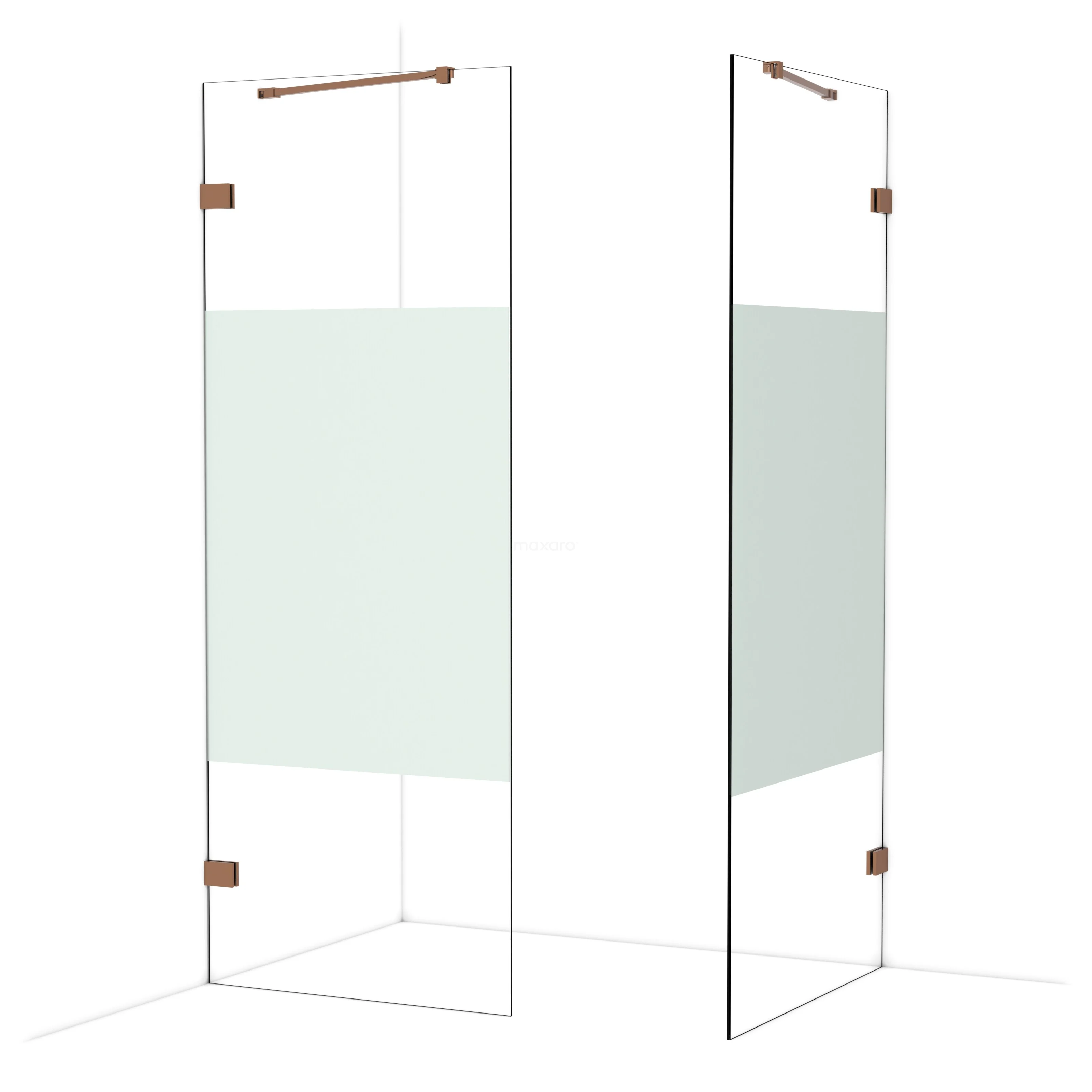 In der stilvollen begehbaren Dusche Diamond mit den Maßen 90x80 cm können Sie jeden Tag herrliche Duschsitzungen genießen. Sie hat ein auffälliges Design aus glänzendem Kupfer und verfügt über Klarglas mit mattem Streifen für mehr Privatsphäre.