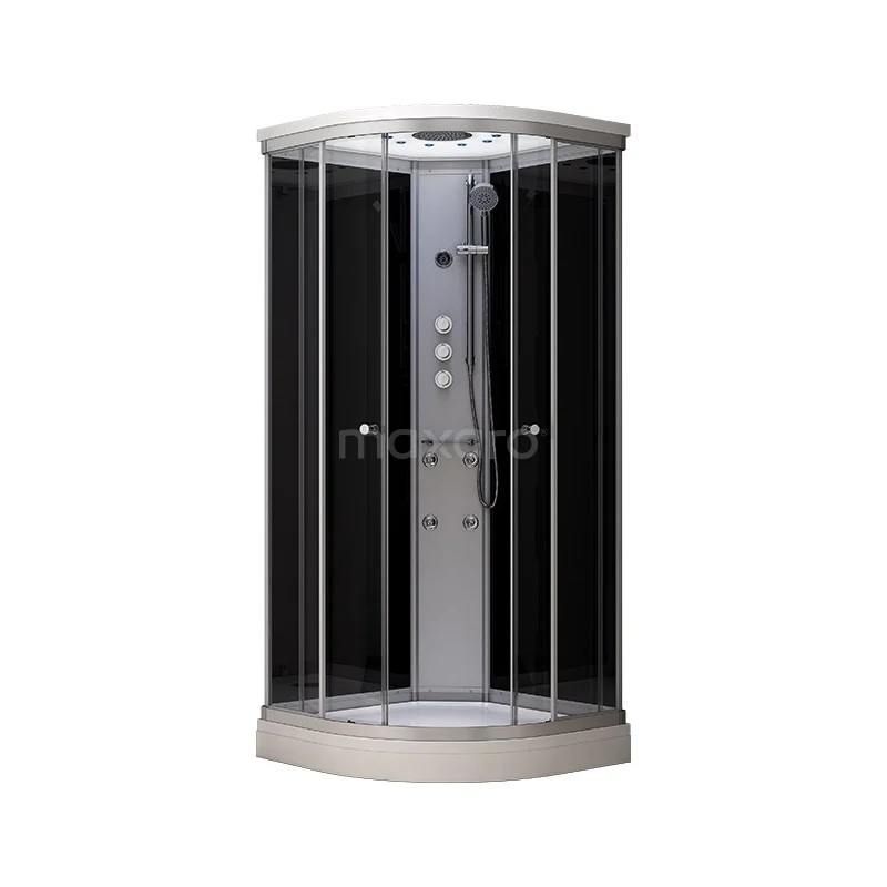 Design Dieser 90x90 cm große Viertelkreis bietet Ihnen die Bewegungsfreiheit, die Sie brauchen. Sie steigen einfach über die Ecke ein und schließen die Schiebetüren mit einer sanften Bewegung. Da die Türen mit doppelten Click-out-Rädern ausgestattet sind, können Sie die Schienen leicht reinigen. Die Kabine hat 6 mm klares und schwarzes Sicherheitsglas. Zusammen mit dem silberfarbenen, pulverbeschichteten Rahmen entsteht ein modernes Erscheinungsbild. Sowohl die Duschwanne / Duschtasse als auch das Dach sind aus hochwertigem Mineralguss gefertigt.