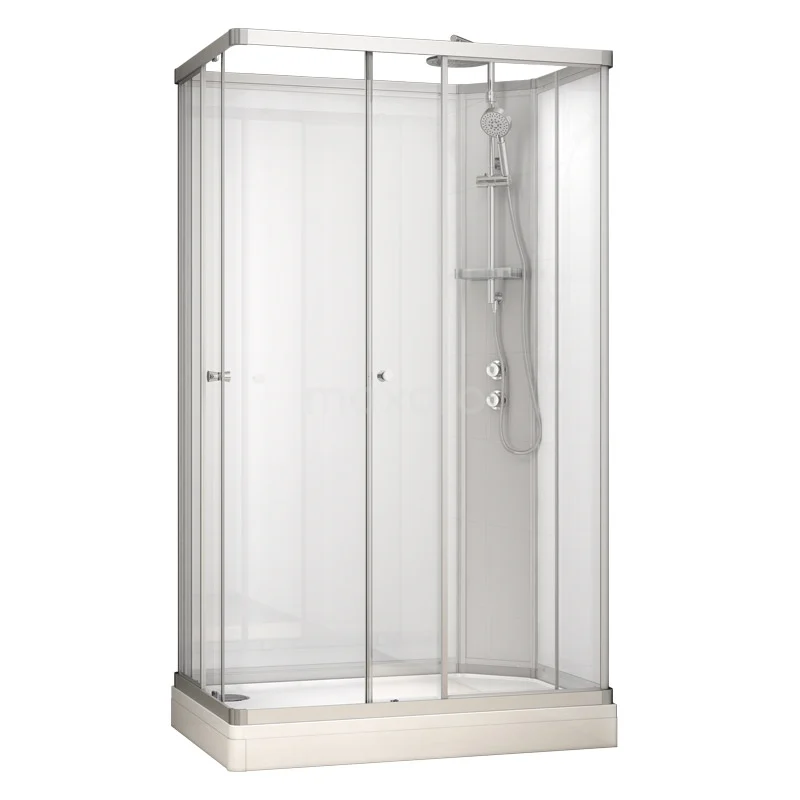 Das komplettes Duschkabinen-Set aus der Serie Modera garantiert ultimatives Duschvergnügen. Diese Kabine ist komplett ausgestattet mit festen Rückwänden, Schiebetüren aus Glas, einer Duschwanne / Duschtasse und einer thermostatischen Armatur mit Hand- und Regendusche. Damit ist diese Duschkabine ein hervorragender Ersatz für Ihre bisherige Dusche.