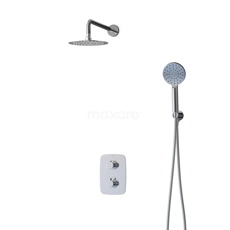 Dieses Unterputz-Regenbrause-Set aus der Serie Balance besteht aus einer thermostatischen Duscharmatur, einer 20 cm langen Regenbrause, einem Wandarm, einer Handbrause, einem Brauseschlauch und einem Handbrausenhalter.So haben Sie sofort alles, was Sie brauchen, um Ihre Dusche zu vervollständigen.Außerdem sind die Regen- und Handbrause mit Easy-Clean ausgestattet, wodurch sich die Strahlöffnungen leicht reinigen lassen.