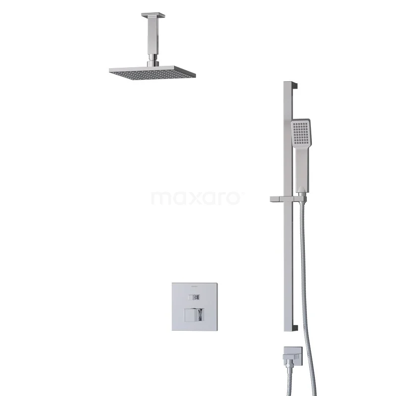 Das Cubic Regenbrause-Set hat ein quadratisches Design mit Chrom-Finish und sieht in einem modernen Badezimmer großartig aus. Dieses Unterputzset umfasst eine Mischbatterie, eine 20 cm lange Regendusche, einen Deckenarm, eine Handbrause, einen Handbrausehalter und einen Brauseschlauch. Damit haben Sie alles, was Sie für Ihre Dusche brauchen. Außerdem sind die Regen- und Handbrause mit Easy-Clean ausgestattet, so dass Sie den Strahlregler ganz einfach entkalken können. So erleben Sie ein Optimum an Pflegeleichtigkeit und Reinigung.