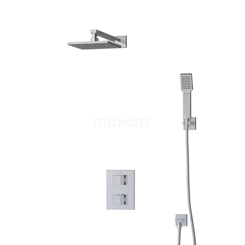 Das Cubic Regenbrause-Set hat ein quadratisches Design mit Chrom-Finish und sieht in einem modernen Badezimmer großartig aus. Dieses Unterputz-Set enthält eine Thermostatarmatur, eine 20 cm lange Regendusche, einen Wandarm, eine Handbrause, einen Handbrausehalter und einen Brauseschlauch. Damit haben Sie alles, was Sie für Ihre Dusche brauchen. Außerdem sind Regen- und Handbrause mit Easy-Clean ausgestattet, wodurch sich der Strahlregler leicht von Kalkablagerungen reinigen lässt. So erleben Sie ein Optimum an Pflegeleichtigkeit und Reinigung.