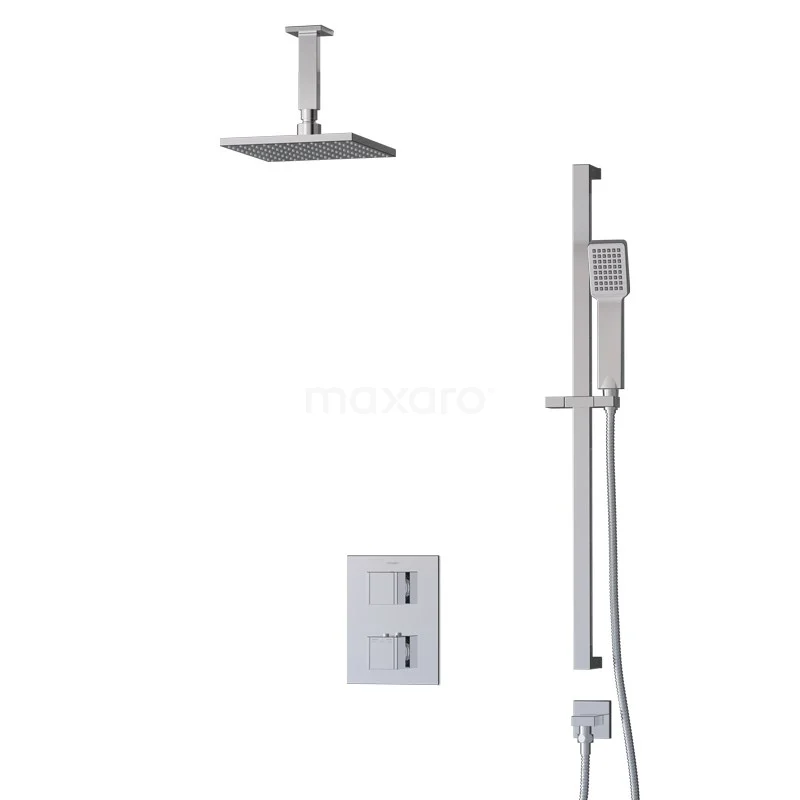 Das Cubic Regenbrause-Set hat ein quadratisches Design mit Chrom-Finish und sieht in einem modernen Badezimmer großartig aus. Dieses Unterputz-Set enthält eine Thermostatarmatur, eine 20 cm Regendusche, einen Deckenarm, eine Handbrause, einen Handbrausehalter und einen Brauseschlauch. Damit haben Sie alles, was Sie für Ihre Dusche brauchen. Außerdem sind Regen- und Handbrause mit Easy-Clean ausgestattet, wodurch sich der Strahlregler leicht von Kalkablagerungen reinigen lässt. So erleben Sie ein Optimum an Pflegeleichtigkeit und Reinigung.
