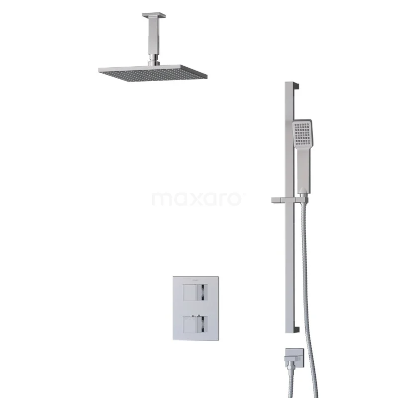 Das Cubic Regenbrauseset hat ein quadratisches Design mit Chrom-Finish und sieht in einem modernen Badezimmer großartig aus. Dieses Unterputz-Set enthält eine Thermostatarmatur, eine 25 cm Regendusche, einen Deckenarm, eine Handbrause, einen Handbrausehalter und einen Brauseschlauch. Damit haben Sie alles, was Sie für Ihre Dusche brauchen. Außerdem sind Regen- und Handbrause mit Easy-Clean ausgestattet, wodurch sich der Strahlregler leicht von Kalkablagerungen reinigen lässt. So erleben Sie ein Optimum an Pflegeleichtigkeit und Reinigung.