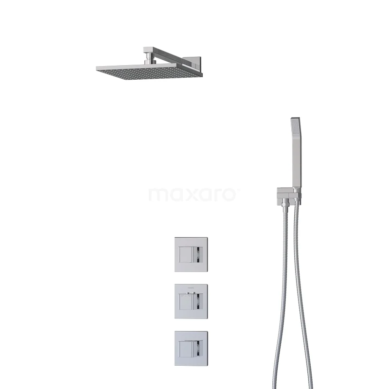 Das Cubic Regenbrause-Set hat ein quadratisches Design mit Chrom-Finish und sieht in einem modernen Badezimmer großartig aus. Dieses Unterputz-Set enthält eine Thermostatarmatur, eine 25 cm Regendusche, einen Wandarm, eine Handbrause, einen Handbrausehalter und einen Brauseschlauch. Damit haben Sie alles, was Sie für Ihre Dusche brauchen. Außerdem sind Regen- und Handbrause mit Easy-Clean ausgestattet, wodurch sich der Strahlregler leicht von Kalkablagerungen reinigen lässt. So erleben Sie ein Optimum an Pflegeleichtigkeit und Reinigung.