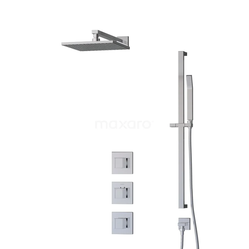 Das Cubic Regenbrause-Set hat ein quadratisches Design mit Chrom-Finish und sieht in einem modernen Badezimmer großartig aus. Dieses Unterputz-Set enthält eine Thermostatarmatur, eine 25 cm Regendusche, einen Wandarm, eine Handbrause, einen Handbrausehalter und einen Brauseschlauch. Damit haben Sie alles, was Sie für Ihre Dusche brauchen. Außerdem sind Regen- und Handbrause mit Easy-Clean ausgestattet, wodurch sich der Strahlregler leicht von Kalkablagerungen reinigen lässt. So erleben Sie ein Optimum an Pflegeleichtigkeit und Reinigung.