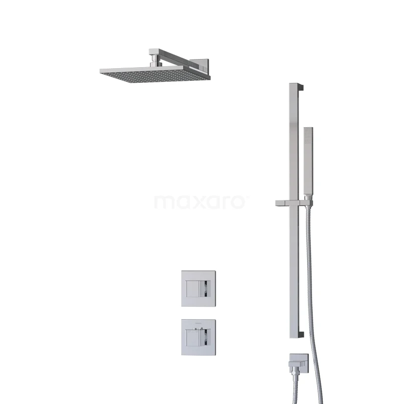 Das Cubic Regenbrause-Set hat ein quadratisches Design mit Chrom-Finish und sieht in einem modernen Badezimmer großartig aus. Dieses Unterputz-Set enthält eine Thermostatarmatur, eine 25 cm Regendusche, einen Wandarm, eine Handbrause, einen Handbrausehalter und einen Brauseschlauch. Damit haben Sie alles, was Sie für Ihre Dusche brauchen. Außerdem sind Regen- und Handbrause mit Easy-Clean ausgestattet, wodurch sich der Strahlregler leicht von Kalkablagerungen reinigen lässt. So erleben Sie ein Optimum an Pflegeleichtigkeit und Reinigung.