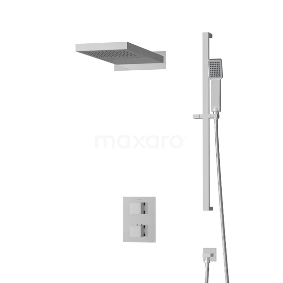 Stylisches Design Das Set hat ein quadratisches Design und ist in Chrom gehalten. Die geraden Linien bilden ein klares Linienmuster, das dem Regenbrauseset einen modernen Look verleiht. Darüber hinaus sorgt die Chromfarbe für ein zeitloses Aussehen und Gefühl.