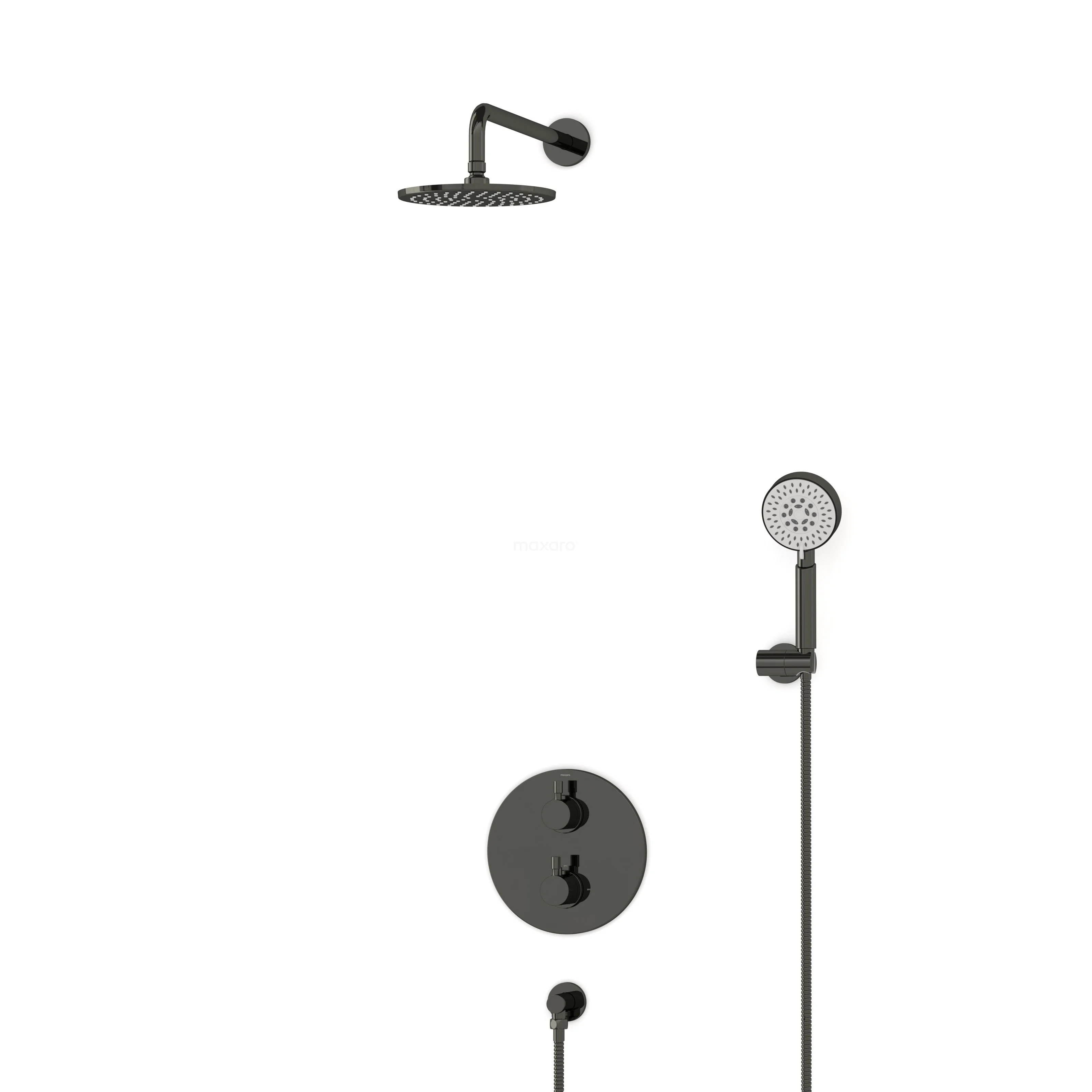 Einbau-Regenbrausegarnitur Radius Schwarz Chrom, Thermostatarmatur, 20cm Kopfbrause, Schwarz Chrom