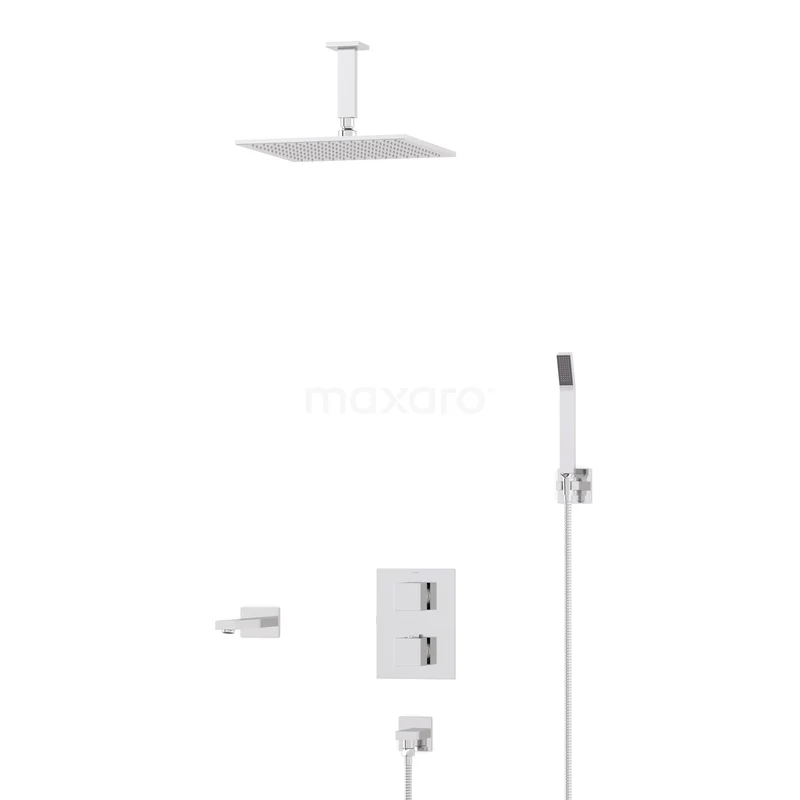 Kubische Einbau Badewannenarmatur mit Regendusche | Chrom Thermostatisch
