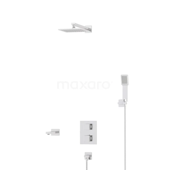 Kubische Einbau Badewannenarmatur mit Regendusche | Chrom Thermostatisch