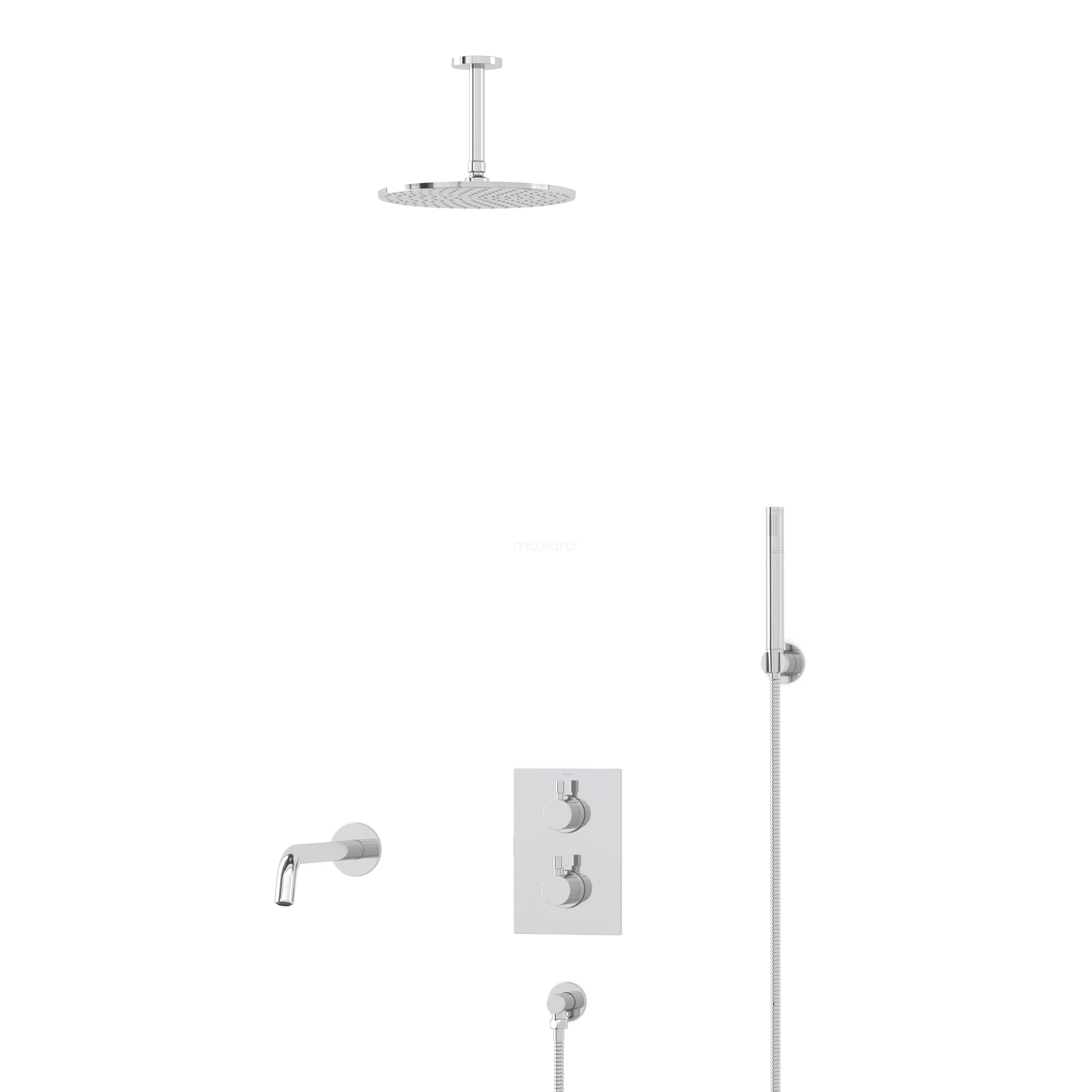 Radius Einbau Badewannenarmatur mit Regendusche | Chrom Thermostatisch
