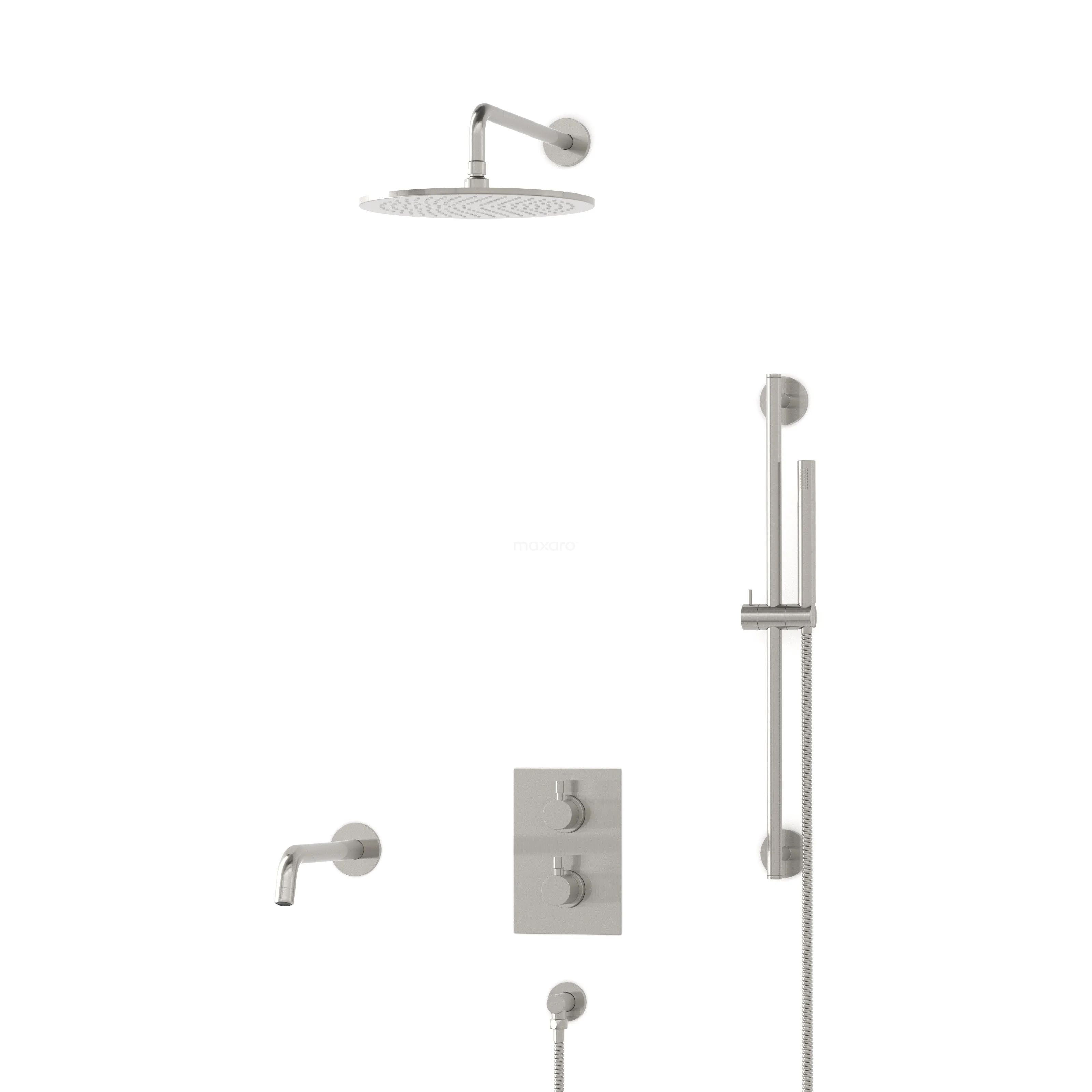 Radius Einbau Badewannenarmatur mit Regendusche | Edelstahl Thermostatisch