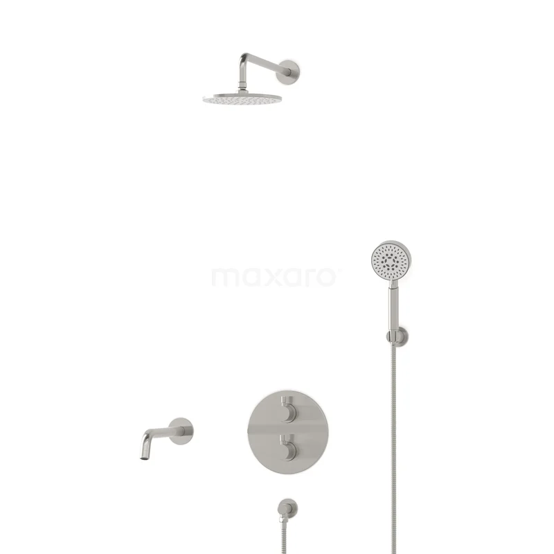Radius Einbau Badewannenarmatur mit Regendusche | Edelstahl Thermostatisch