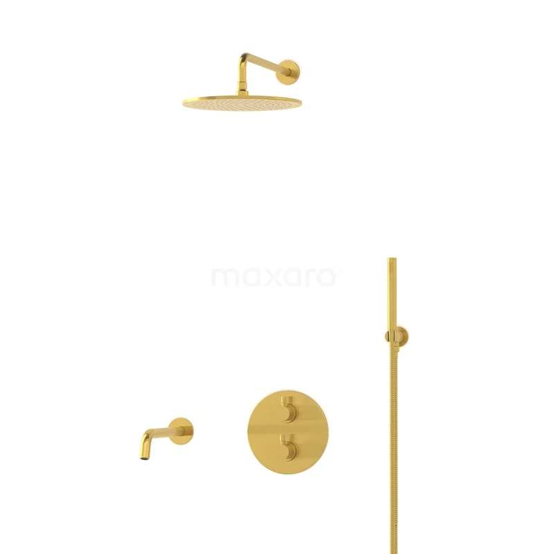 Radius Einbau Badewannenarmatur mit Regendusche | Gold Thermostatisch