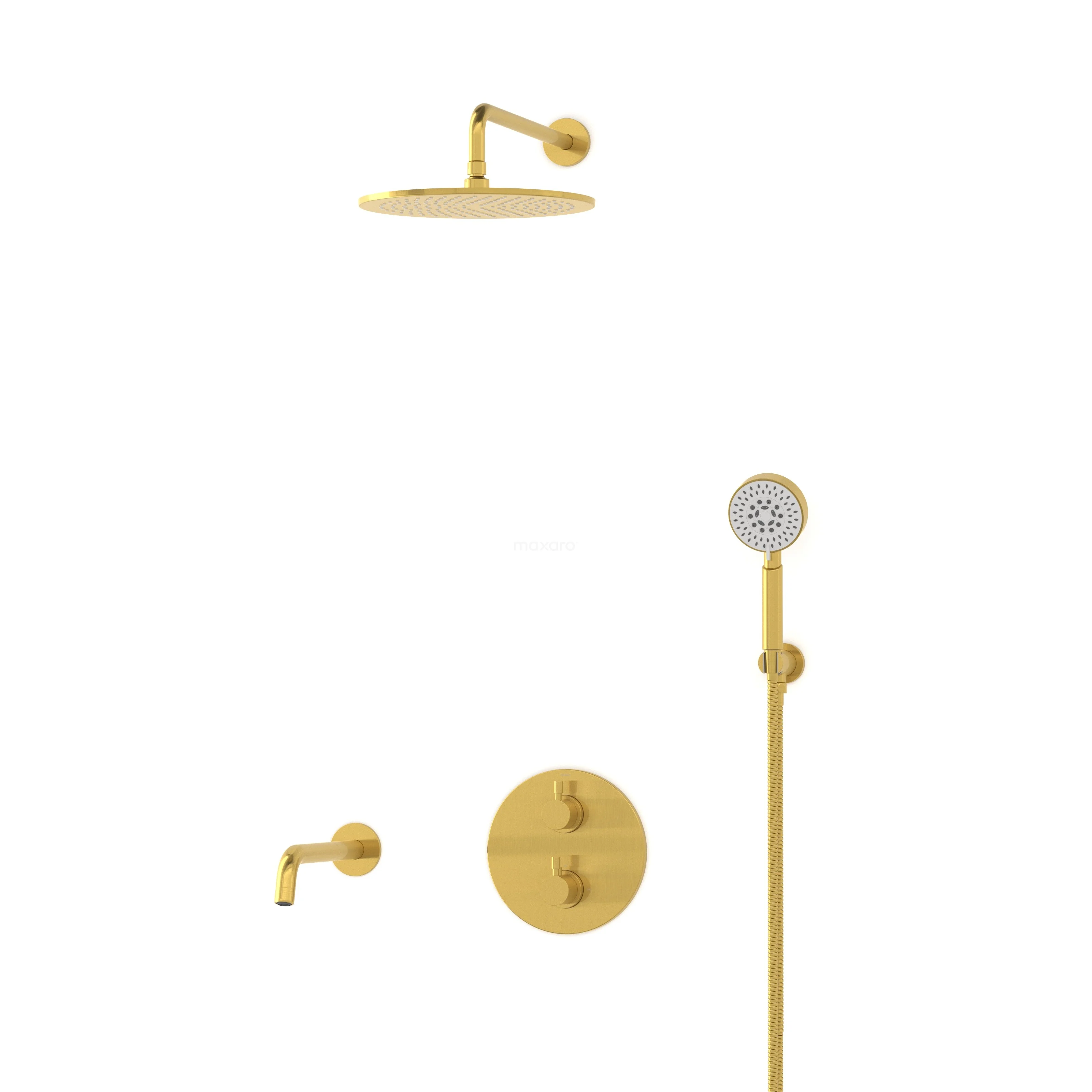Radius Einbau Badewannenarmatur mit Regendusche | Gold Thermostatisch