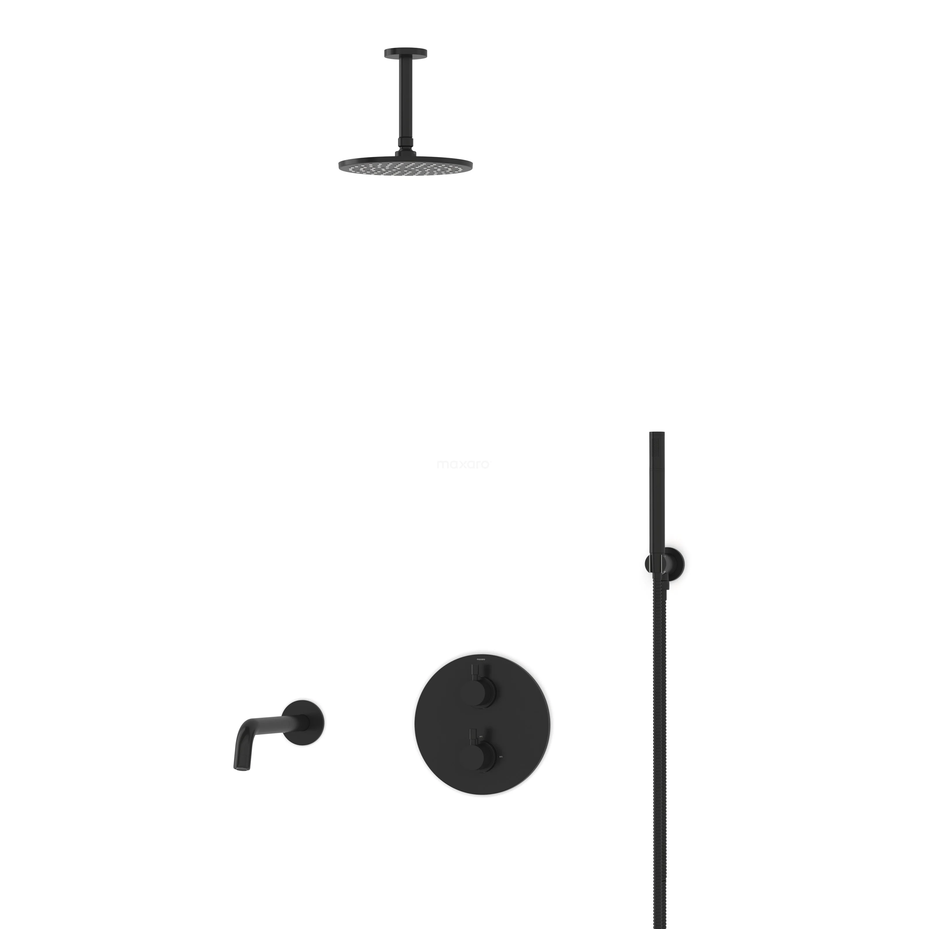 Radius Einbau Badewannenarmatur mit Regendusche | Schwarz Thermostatisch