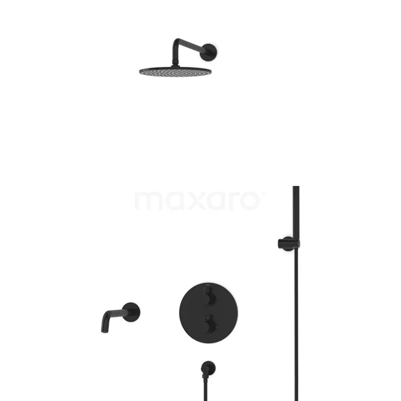 Radius Einbau Badewannenarmatur mit Regendusche | Schwarz Thermostatisch