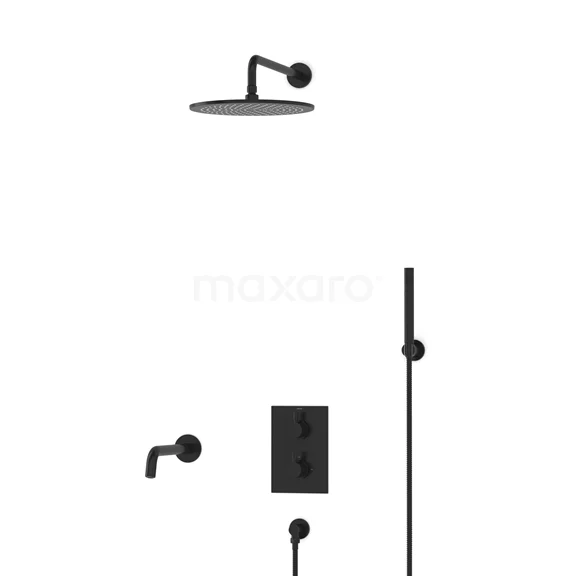 Radius Einbau Badewannenarmatur mit Regendusche | Schwarz Thermostatisch
