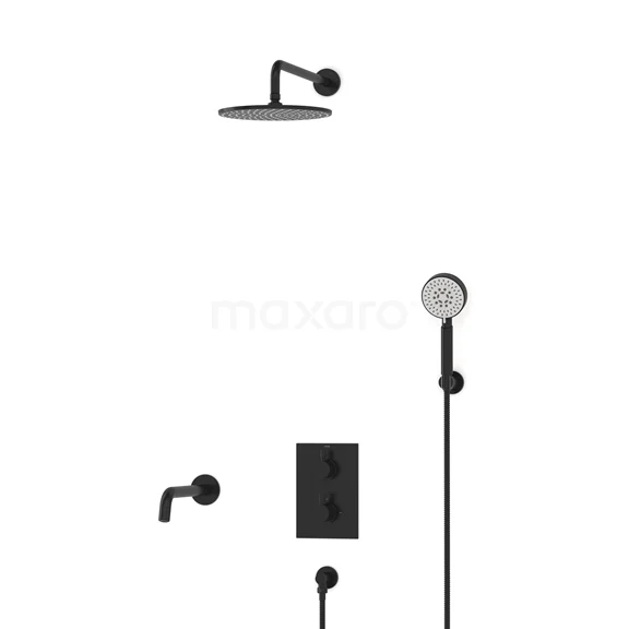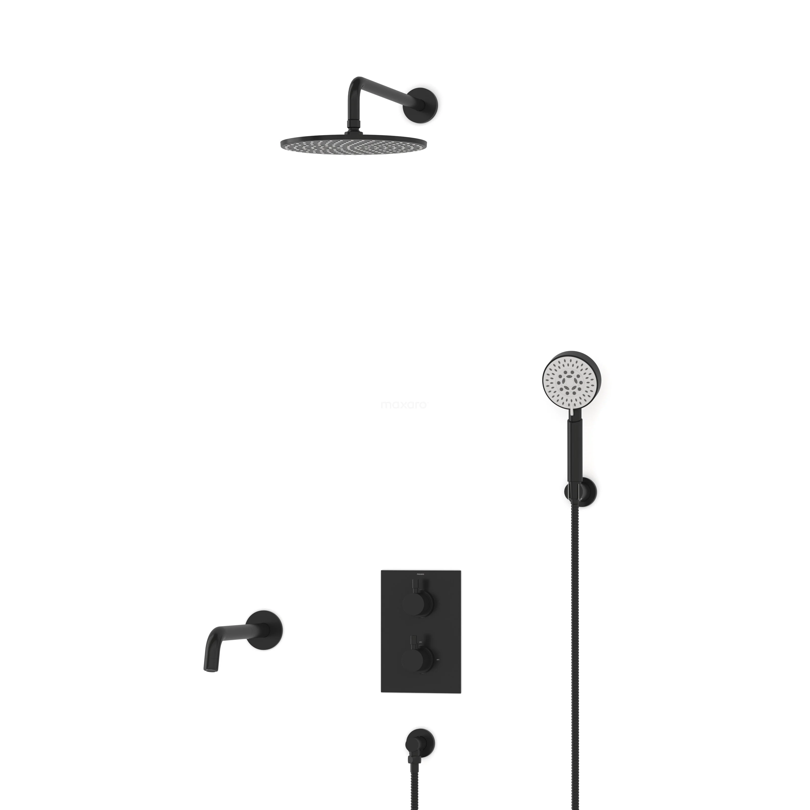 Radius Einbau Badewannenarmatur mit Regendusche | Schwarz Thermostatisch