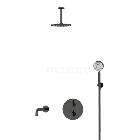 Radius Einbau Badewannenarmatur mit Regendusche | Schwarzchrom Thermostatisch