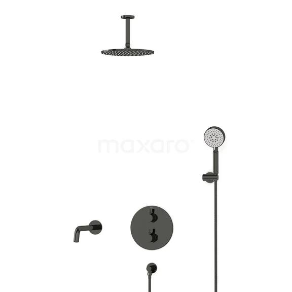 Radius Einbau Badewannenarmatur mit Regendusche | Schwarzchrom Thermostatisch