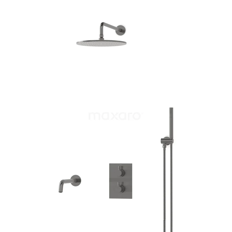 Radius Einbau Badewannenarmatur mit Regendusche | Schwarzes Metall Thermostatisch