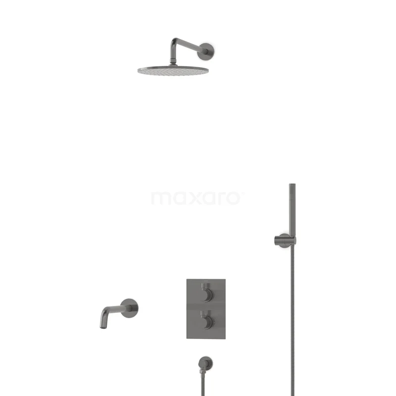 Radius Einbau Badewannenarmatur mit Regendusche | Schwarzes Metall Thermostatisch