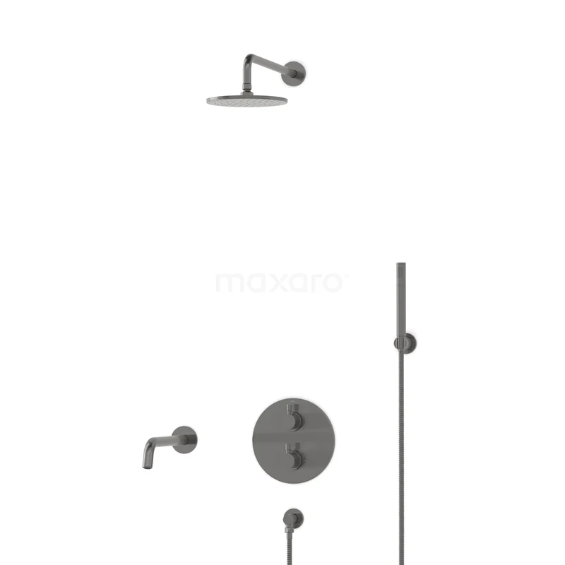 Radius Einbau Badewannenarmatur mit Regendusche | Schwarzes Metall Thermostatisch