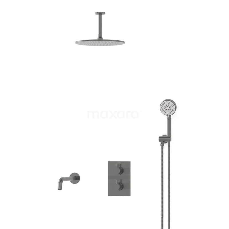 Radius Einbau Badewannenarmatur mit Regendusche | Schwarzes Metall Thermostatisch
