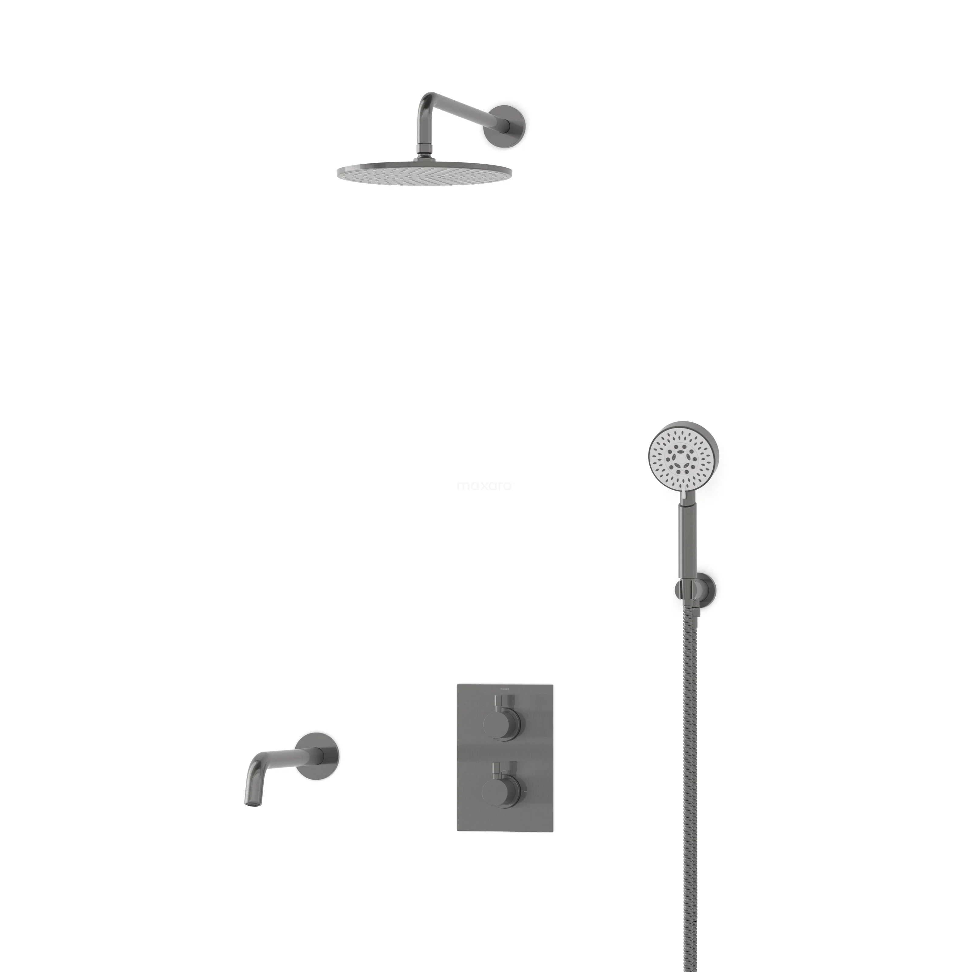 Radius Einbau Badewannenarmatur mit Regendusche | Schwarzes Metall Thermostatisch
